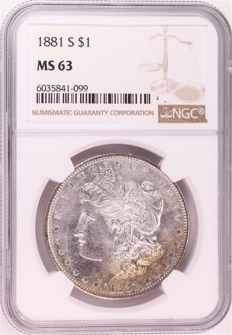 One 1881-S $1 Morgan Silver Dollar Coin NGC MS63 Nice Toning. NGC Certified.