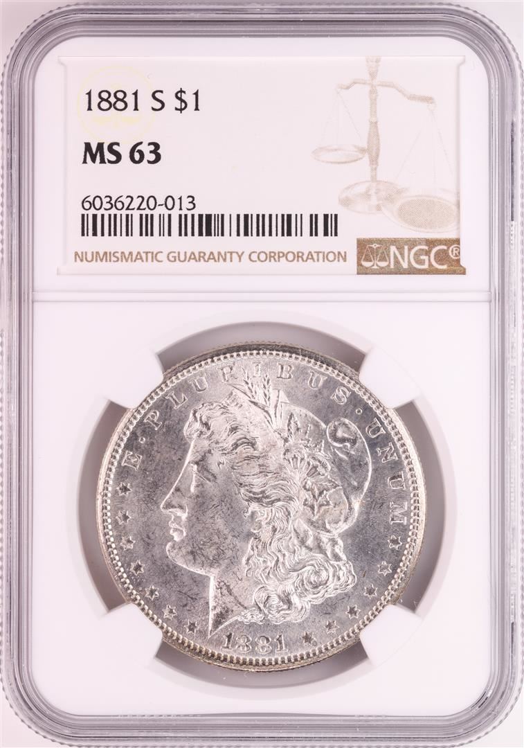 One 1881-S $1 Morgan Silver Dollar Coin NGC MS63 Nice Toning. NGC Certified.
