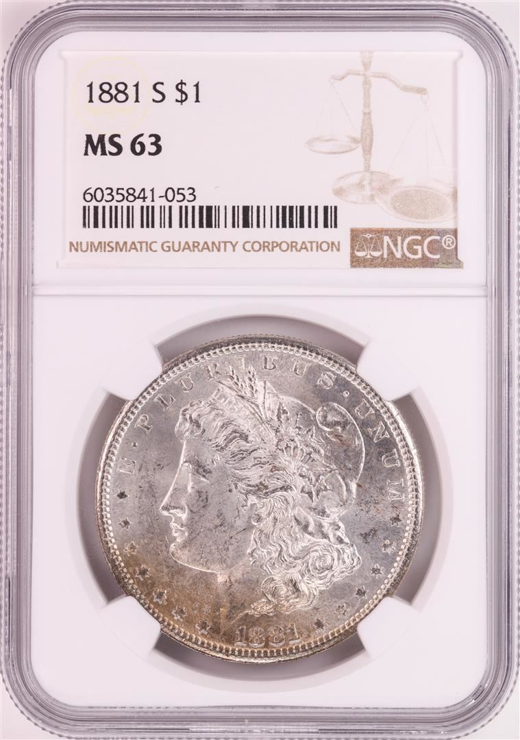 One 1881-S $1 Morgan Silver Dollar Coin NGC MS63 Nice Toning. NGC Certified.
