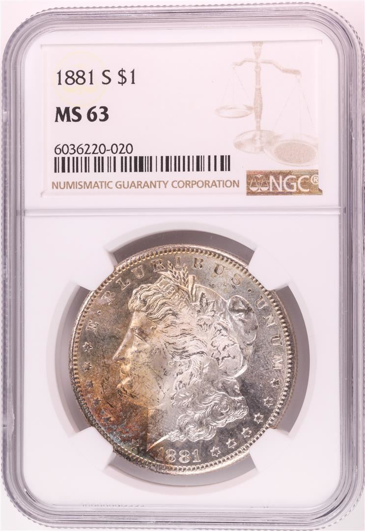 One 1881-S $1 Morgan Silver Dollar Coin NGC MS63 Nice Toning. NGC Certified.