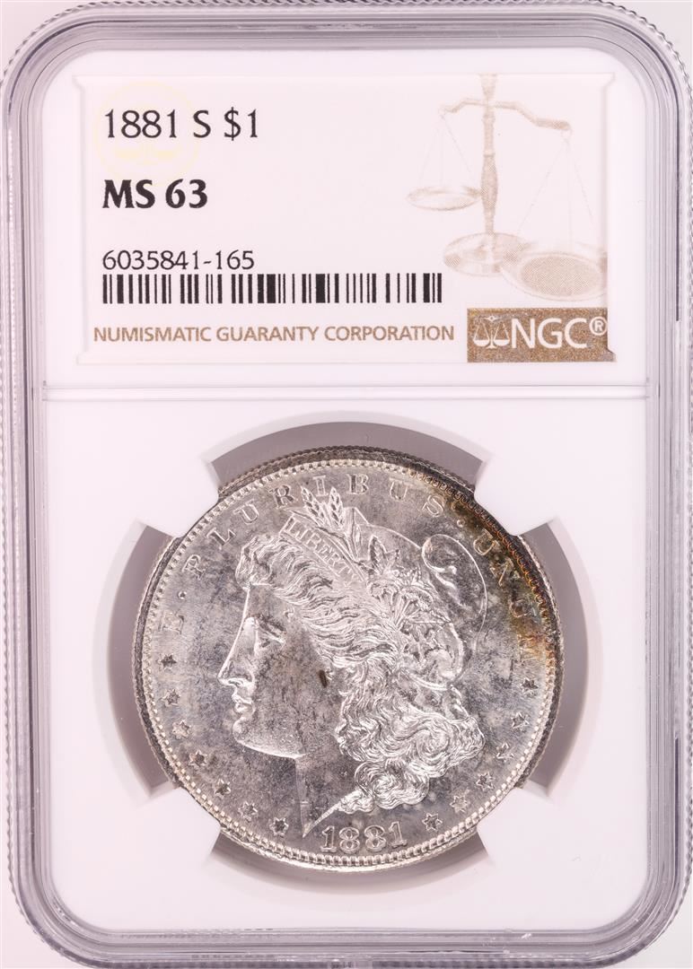 One 1881-S $1 Morgan Silver Dollar Coin NGC MS63 Nice Toning. NGC Certified.