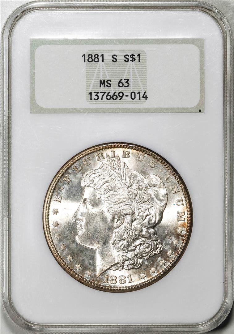 One 1881-S $1 Morgan Silver Dollar Coin NGC MS63 Old Fatty Holder. NGC Certified.