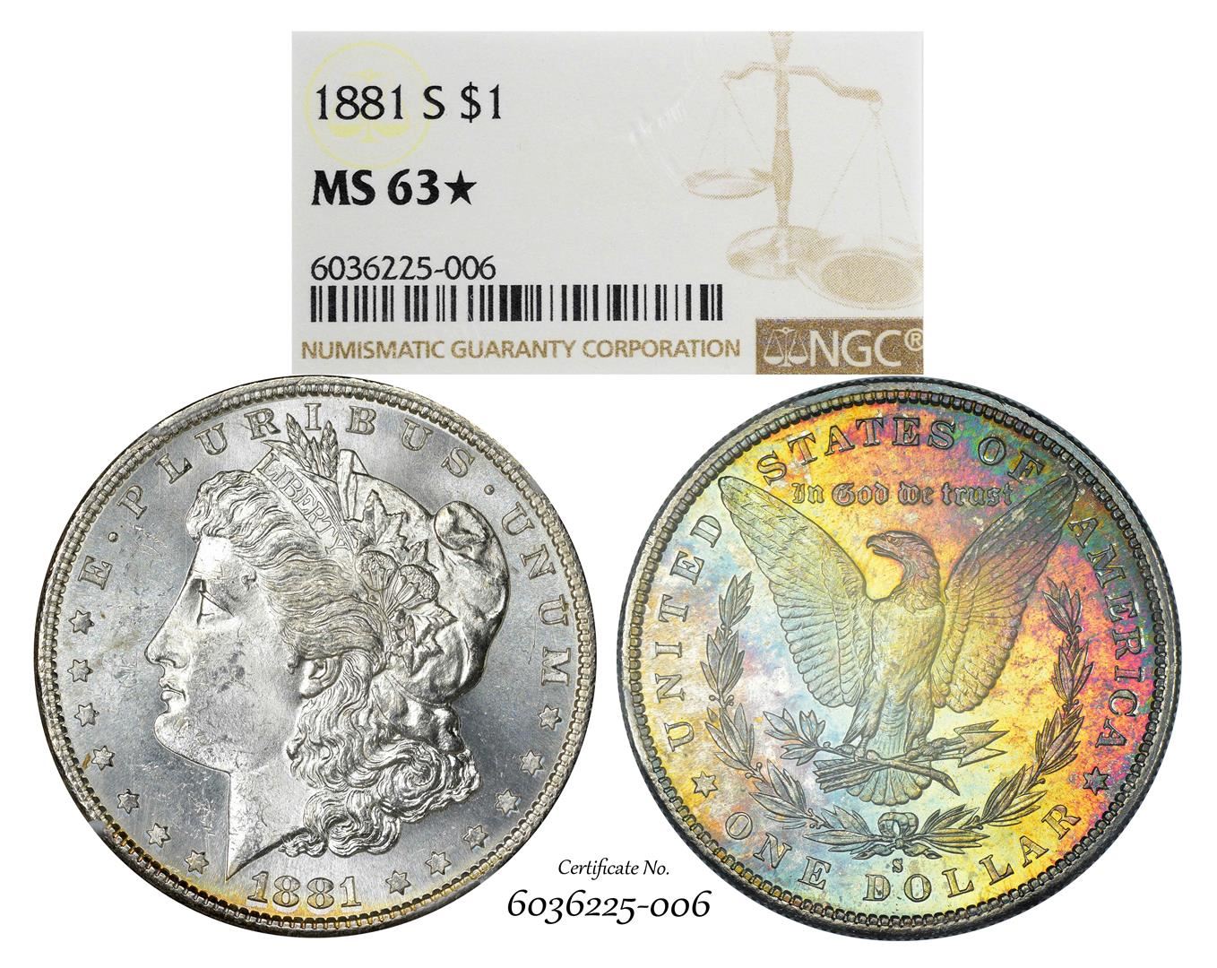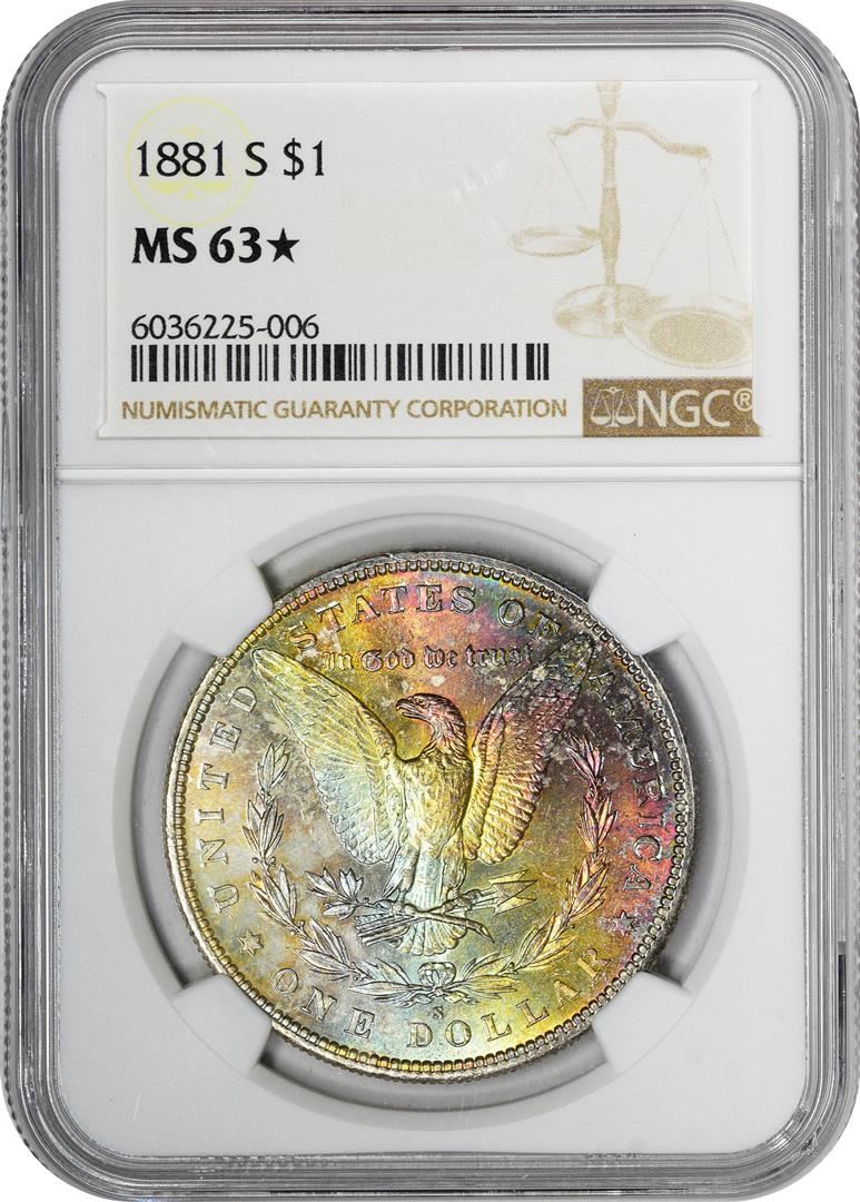 1881-S $1 Morgan Silver Dollar Coin NGC MS63* Star Amazing Toning