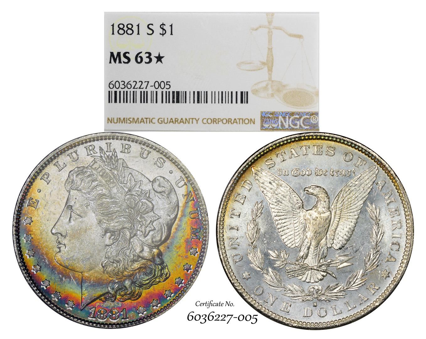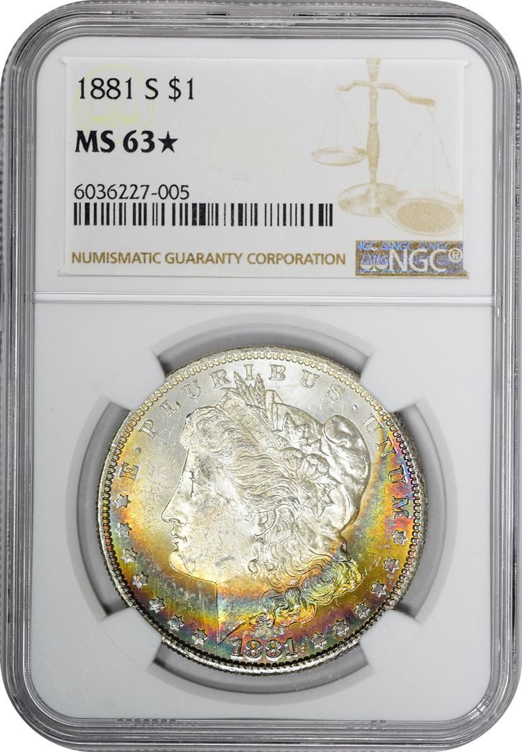 One 1881-S $1 Morgan Silver Dollar Coin NGC MS63* Star Amazing Toning. NGC Certified.