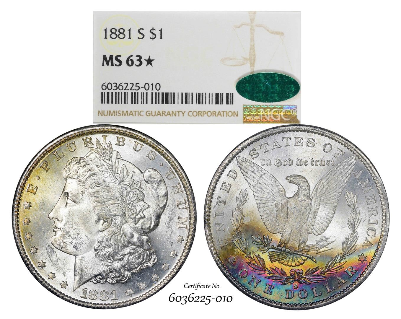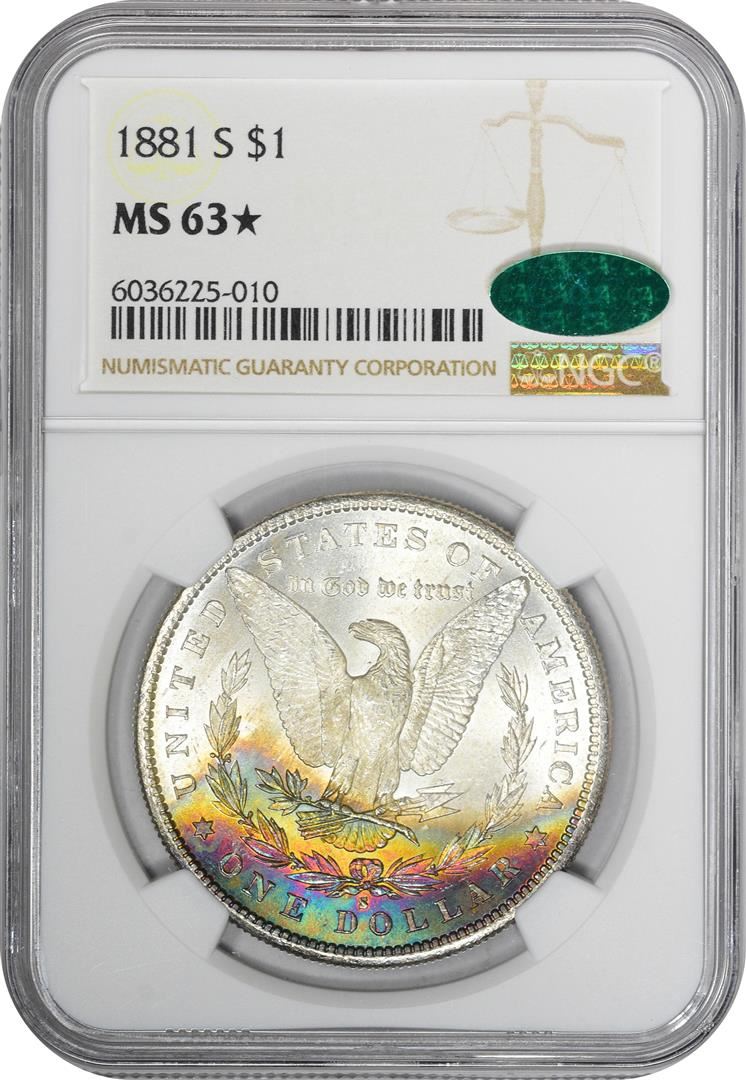 1881-S $1 Morgan Silver Dollar Coin NGC MS63* Star CAC Amazing Toning