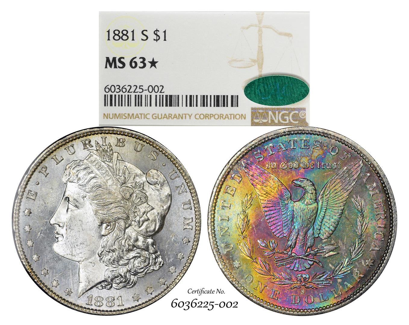 1881-S $1 Morgan Silver Dollar Coin NGC MS63* Star CAC Amazing Toning