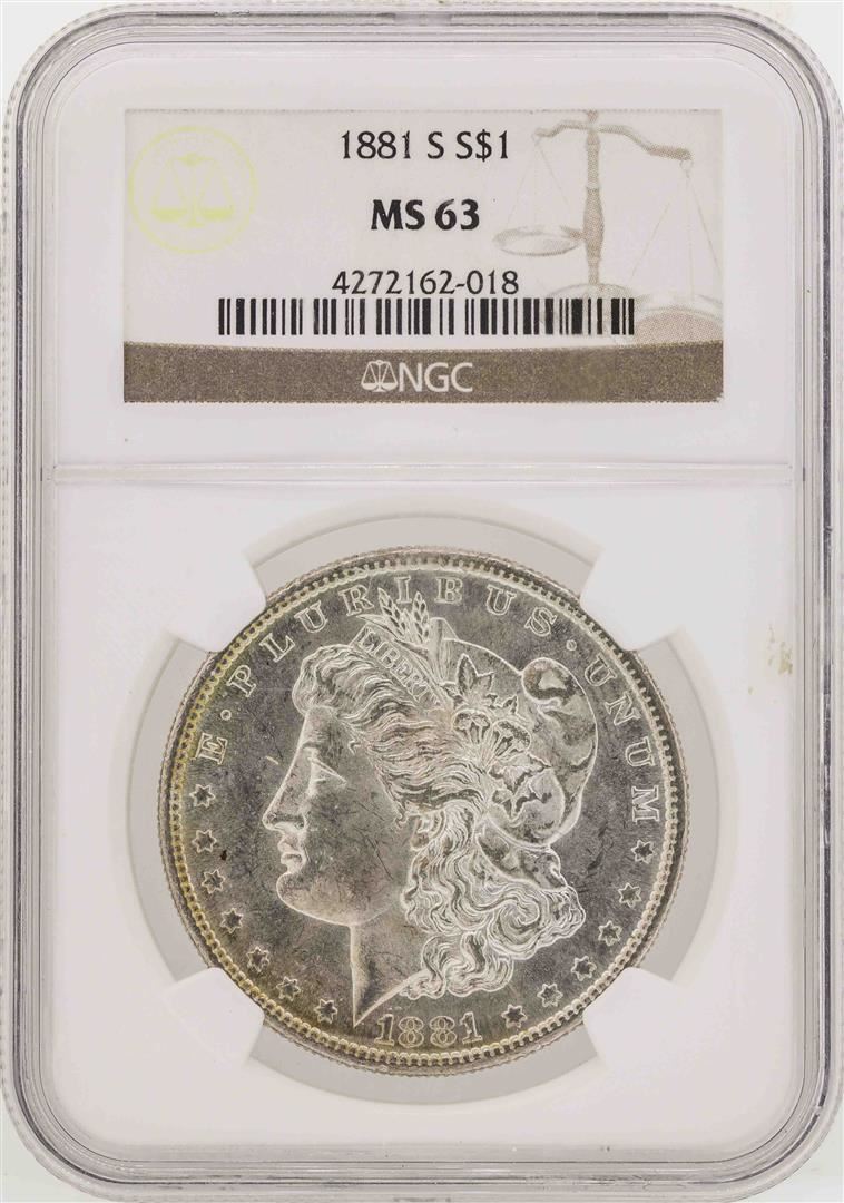 One 1881-S $1 Morgan Silver Dollar Coin NGC MS63. NGC Certified.