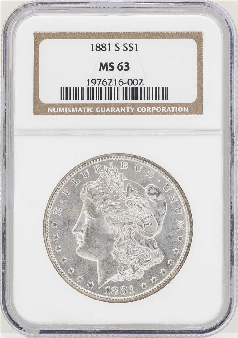 One 1881-S $1 Morgan Silver Dollar Coin NGC MS63. NGC Certified.