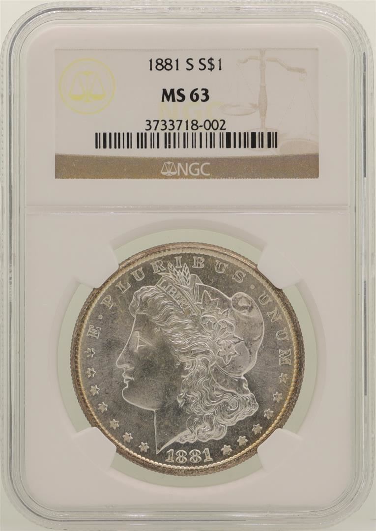 One 1881-S $1 Morgan Silver Dollar Coin NGC MS63. NGC Certified.