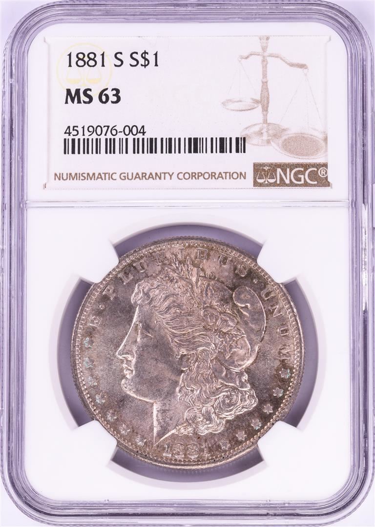 One 1881-S $1 Morgan Silver Dollar Coin NGC MS63. NGC Certified.