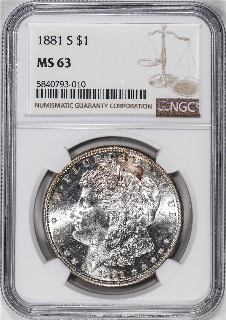 One 1881-S $1 Morgan Silver Dollar Coin NGC MS63. NGC Certified.