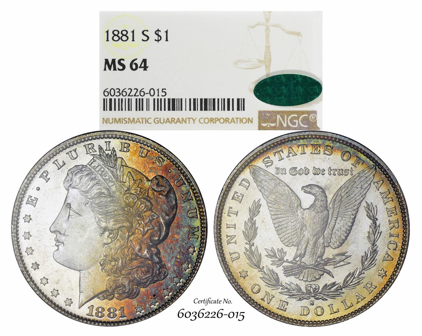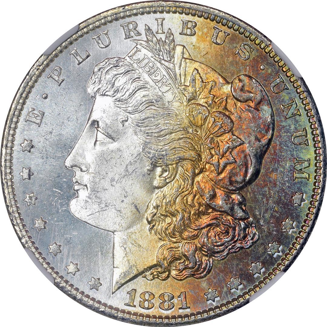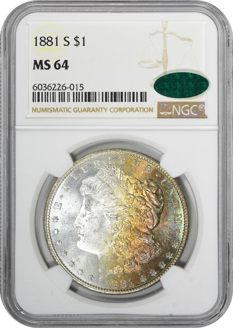1881-S $1 Morgan Silver Dollar Coin NGC MS64 CAC Amazing Toning
