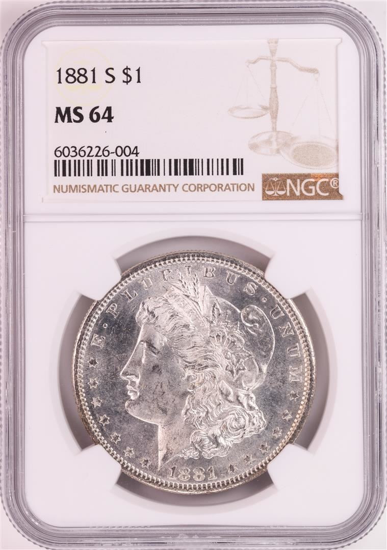 One 1881-S $1 Morgan Silver Dollar Coin NGC MS64 Great Toning. NGC Certified.
