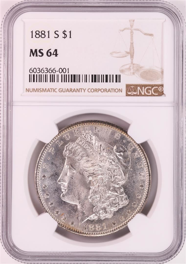 One 1881-S $1 Morgan Silver Dollar Coin NGC MS64 Great Toning. NGC Certified.