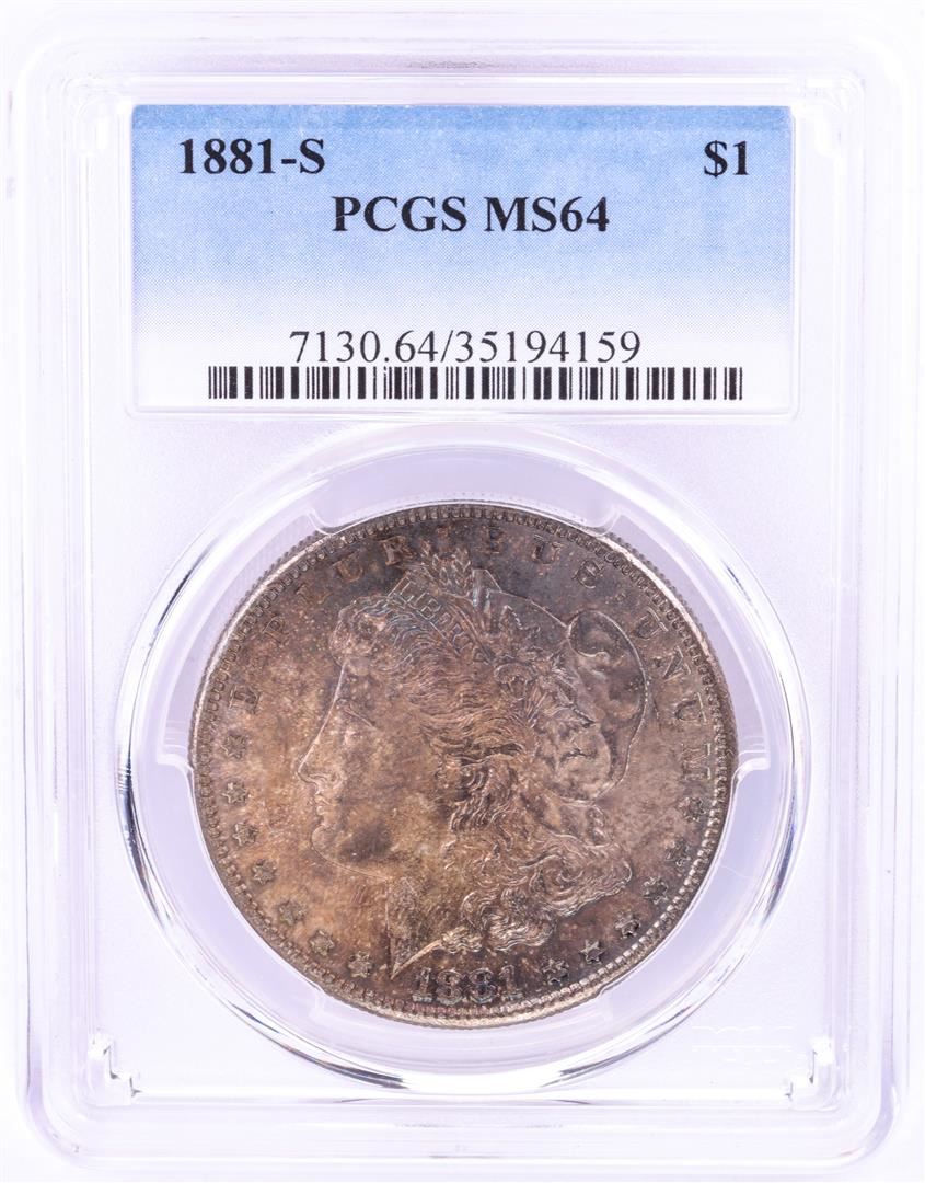 One 1881-S $1 Morgan Silver Dollar Coin NGC MS64 Nice Toning. NGC Certified.