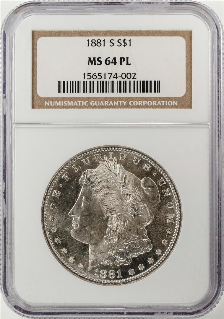 One 1881-S $1 Morgan Silver Dollar Coin NGC MS64 PL. NGC Certified.