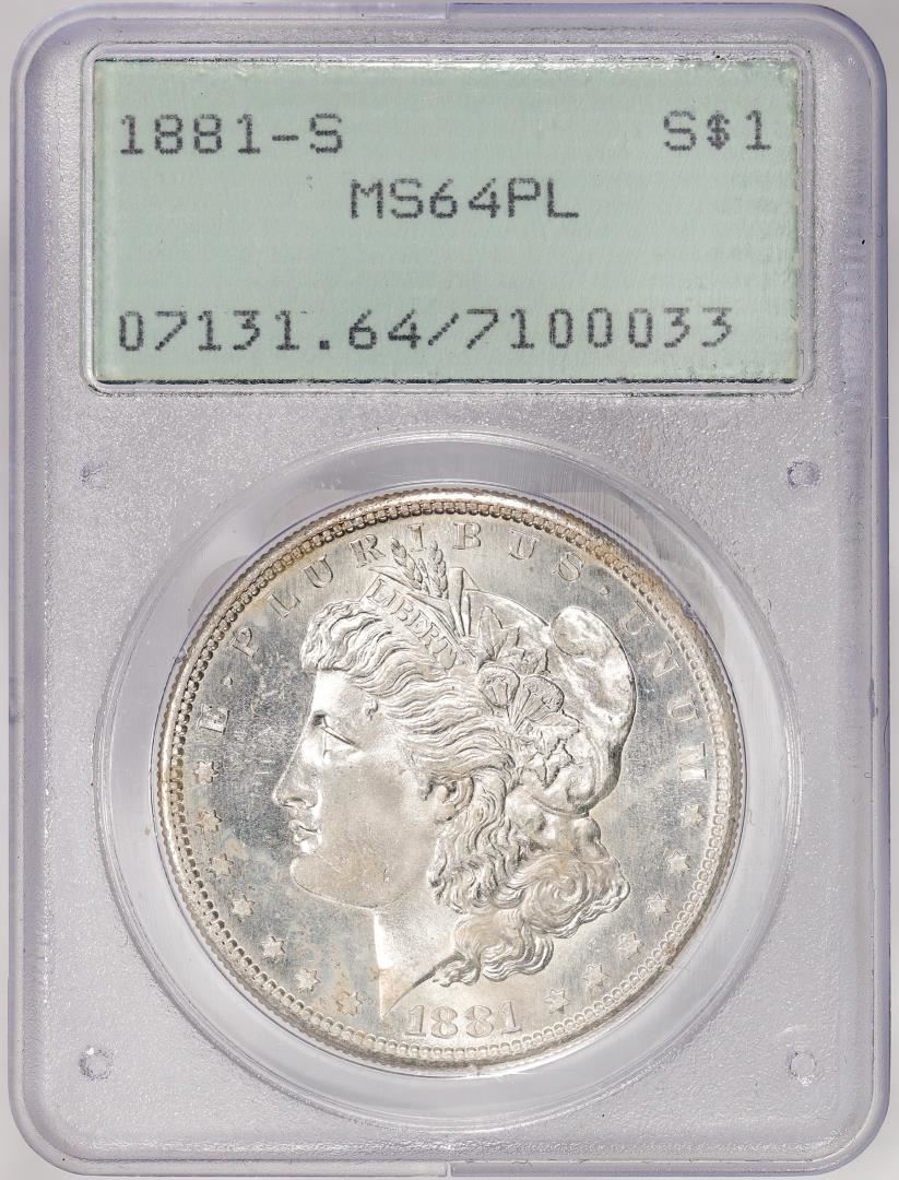 1881-S $1 Morgan Silver Dollar Coin NGC MS64PL Old Green Rattler Holder