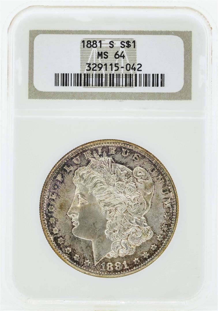 One 1881-S $1 Morgan Silver Dollar Coin NGC MS64. NGC Certified.