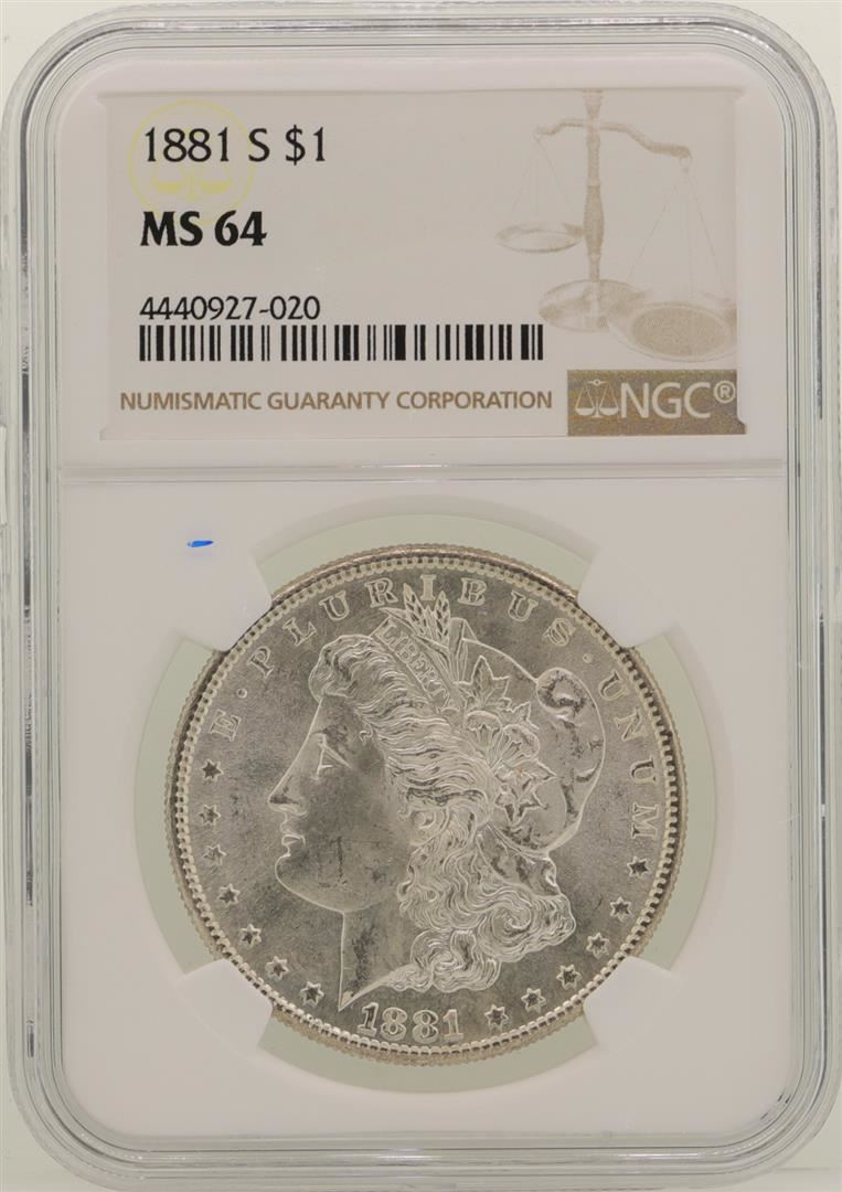 One 1881-S $1 Morgan Silver Dollar Coin NGC MS64. NGC Certified.