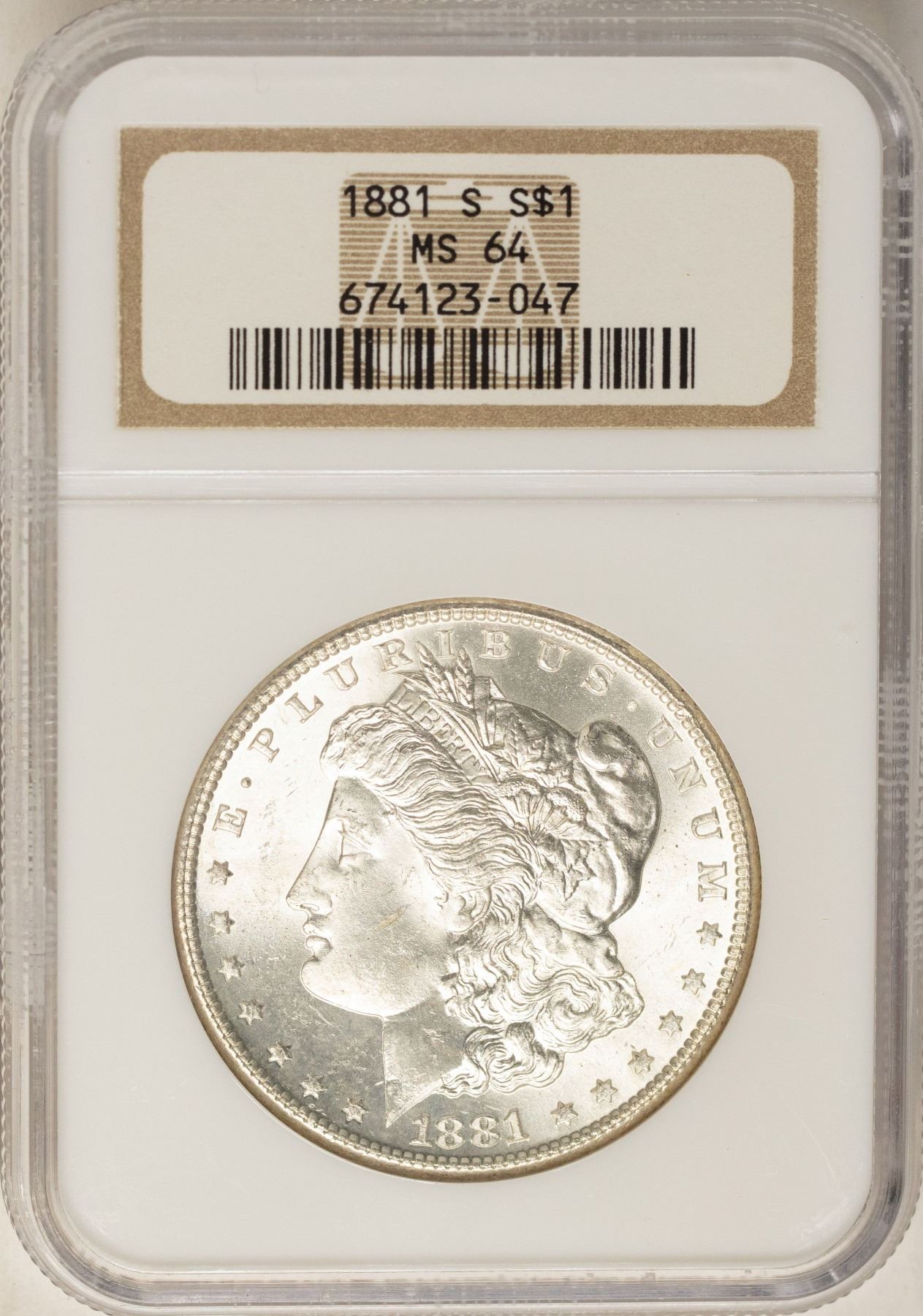 One 1881-S $1 Morgan Silver Dollar Coin NGC MS64.
