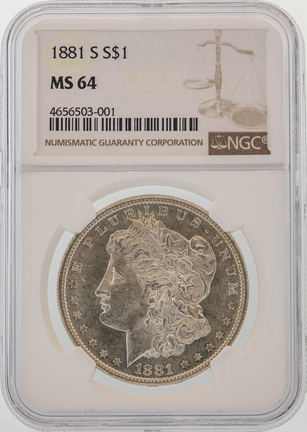 One 1881-S $1 Morgan Silver Dollar Coin NGC MS64.