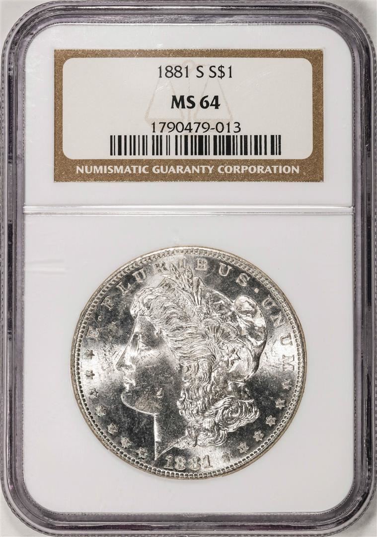 One 1881-S $1 Morgan Silver Dollar Coin NGC MS64. NGC Certified.