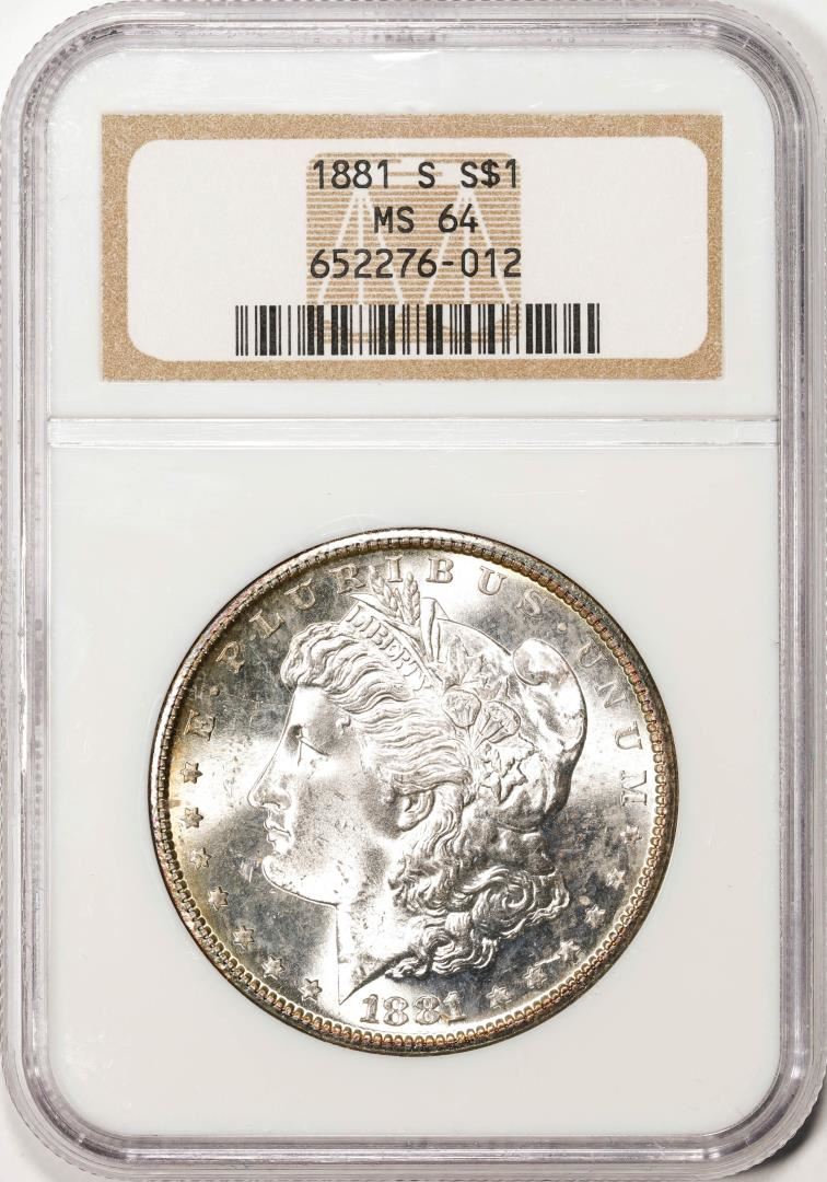 One 1881-S $1 Morgan Silver Dollar Coin NGC MS64. NGC Certified.