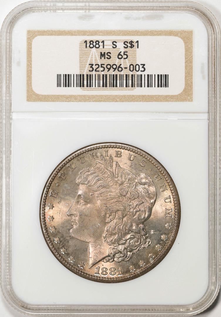 One 1881-S $1 Morgan Silver Dollar Coin NGC MS65 Nice Toning. NGC Certified.