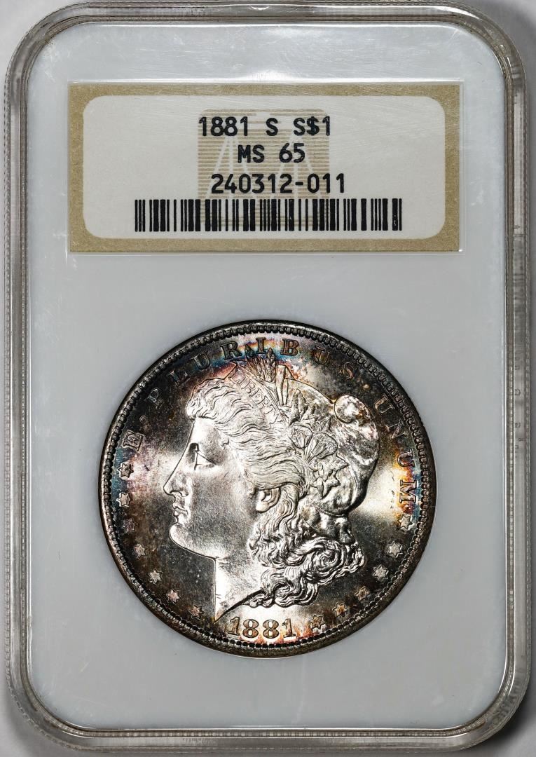 1881-S $1 Morgan Silver Dollar Coin NGC MS65 Old Fatty Holder Nice Toning