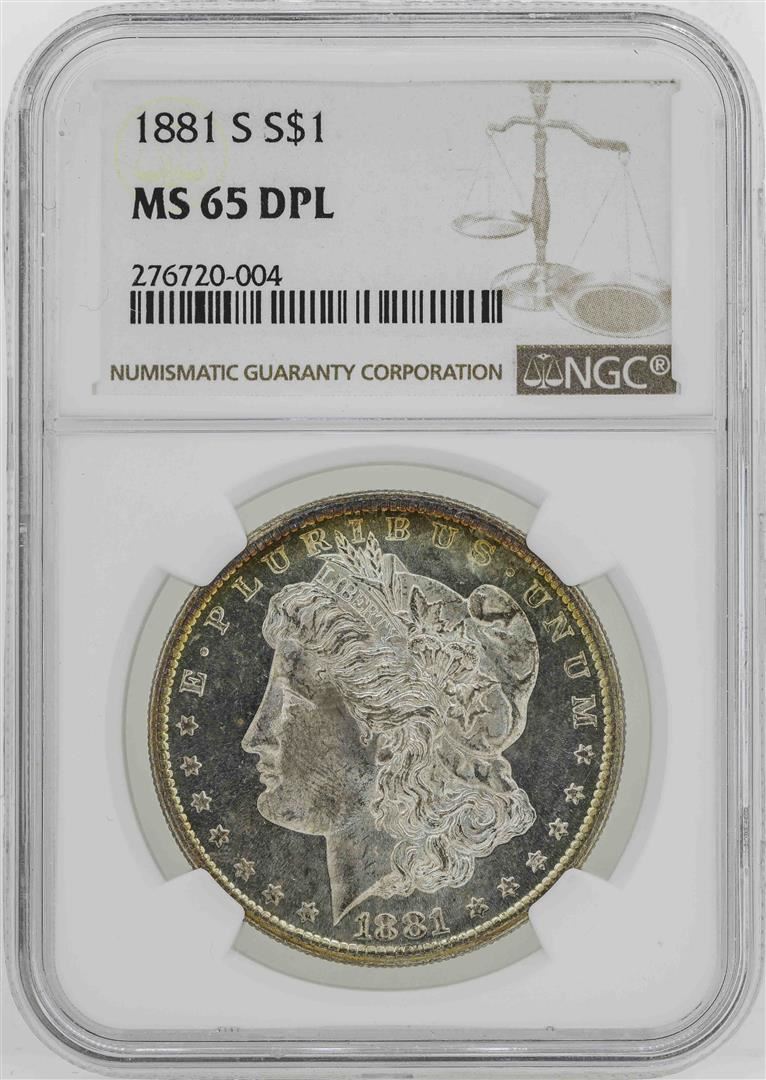 One 1881-S $1 Morgan Silver Dollar Coin NGC MS65DPL. NGC Certified.