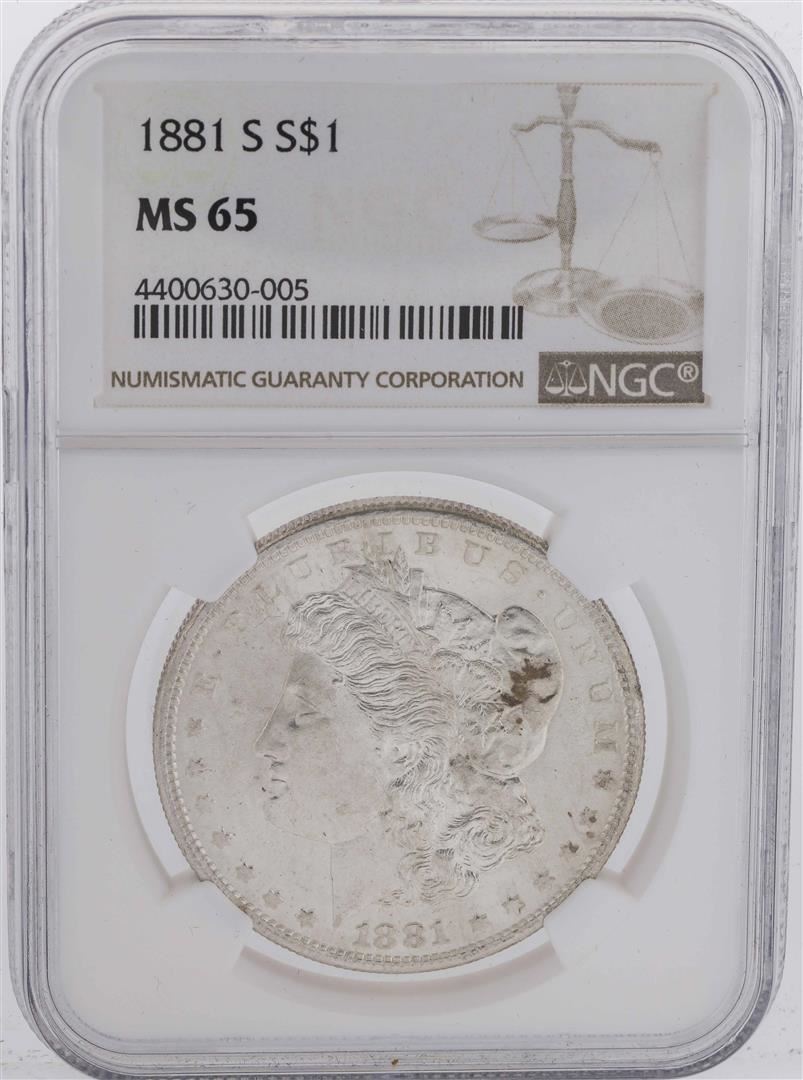 One 1881-S $1 Morgan Silver Dollar Coin NGC MS65. NGC Certified.