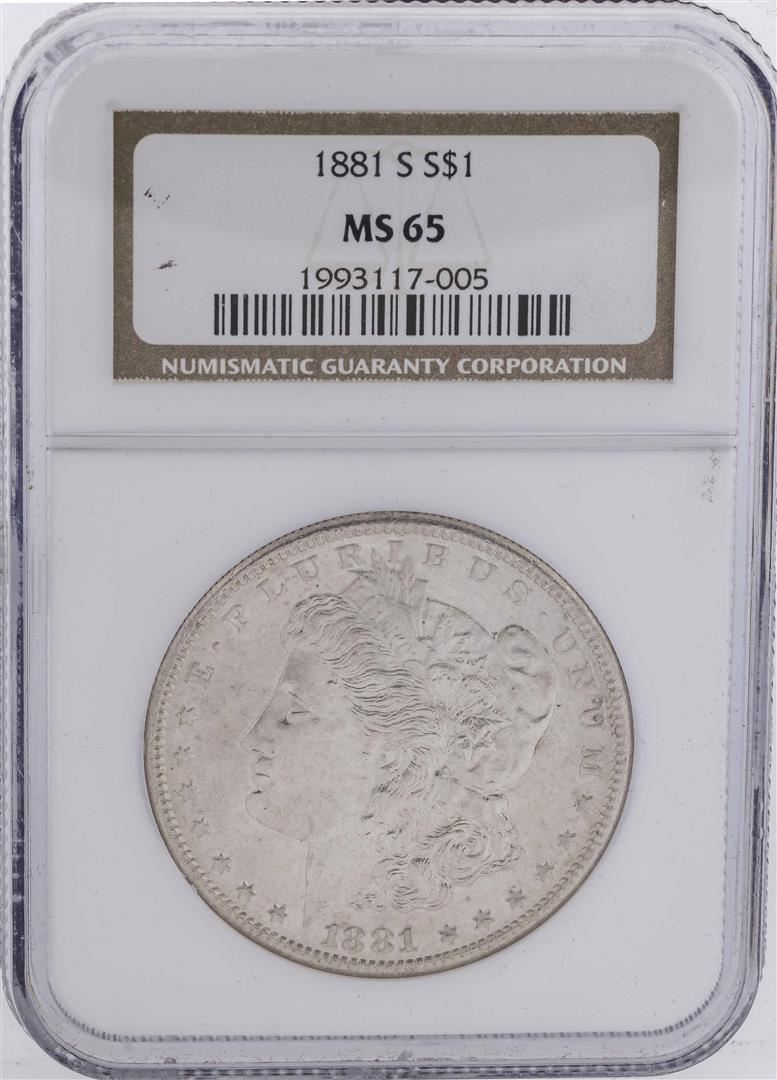 One 1881-S $1 Morgan Silver Dollar Coin NGC MS65. NGC Certified.