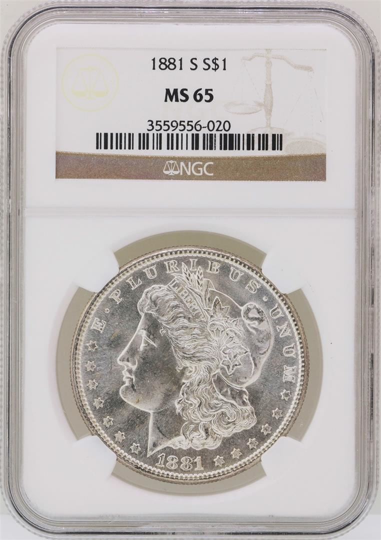 One 1881-S $1 Morgan Silver Dollar Coin NGC MS65. NGC Certified.