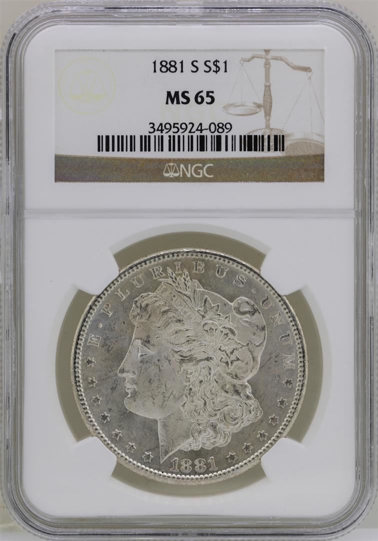 One 1881-S $1 Morgan Silver Dollar Coin NGC MS65. NGC Certified.