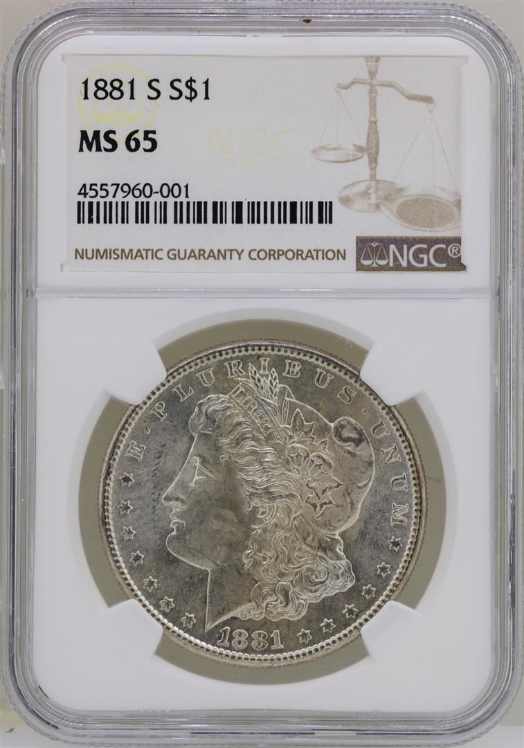 One 1881-S $1 Morgan Silver Dollar Coin NGC MS65. NGC Certified.