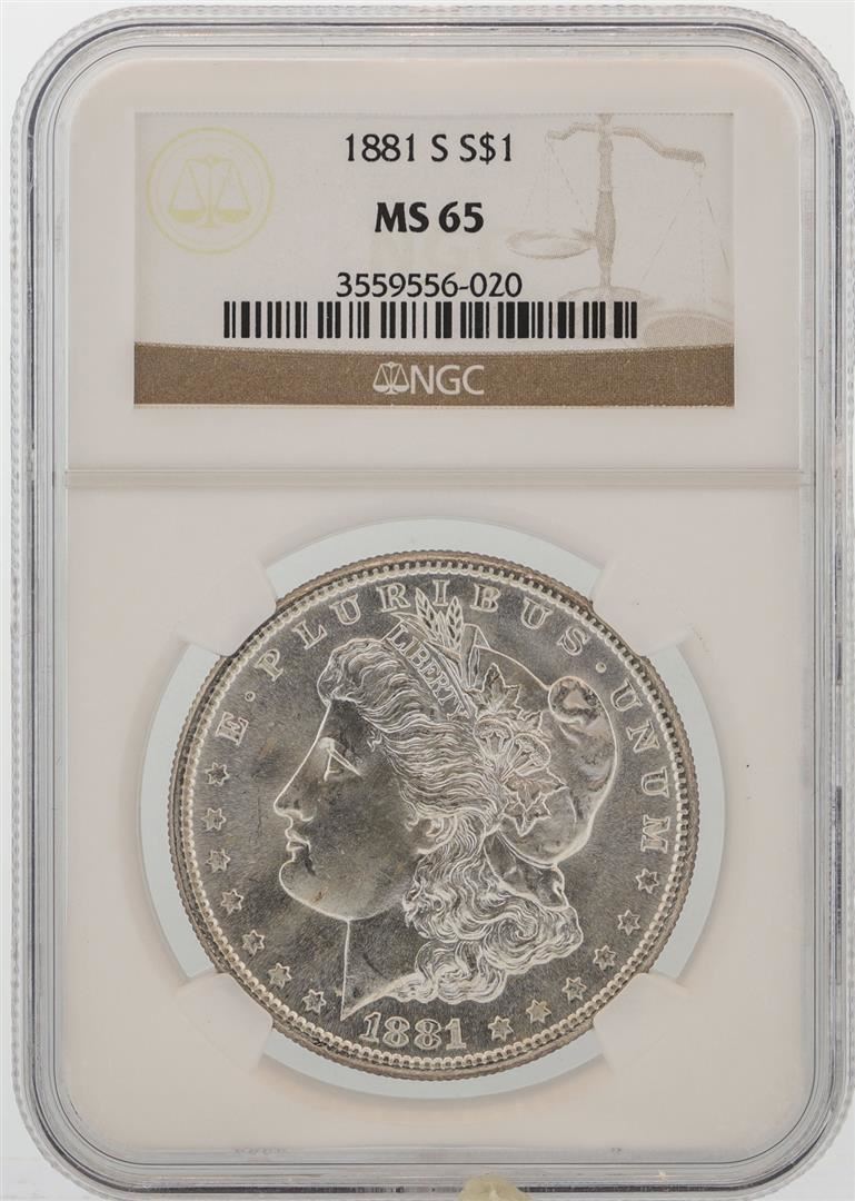 One 1881-S $1 Morgan Silver Dollar Coin NGC MS65. NGC Certified.