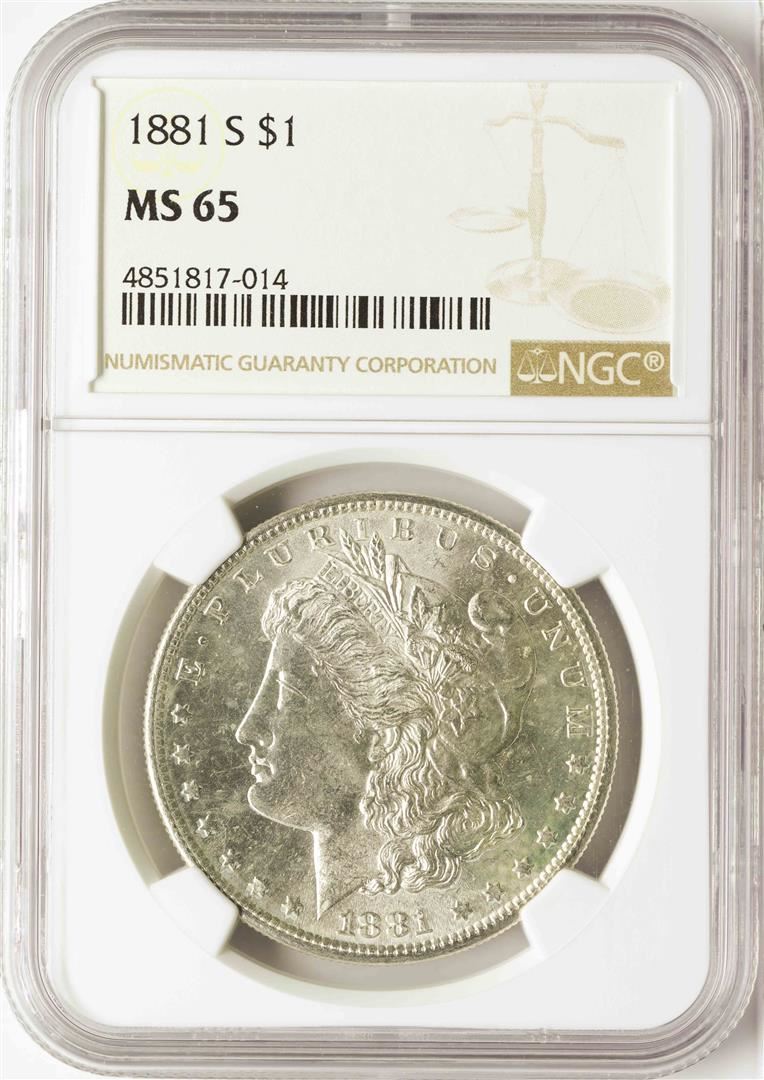 One 1881-S $1 Morgan Silver Dollar Coin NGC MS65. NGC Certified.