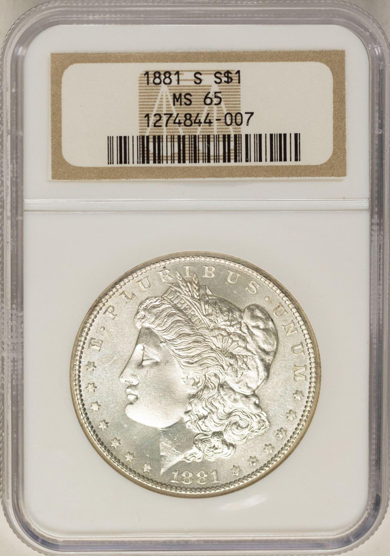 One 1881-S $1 Morgan Silver Dollar Coin NGC MS65.