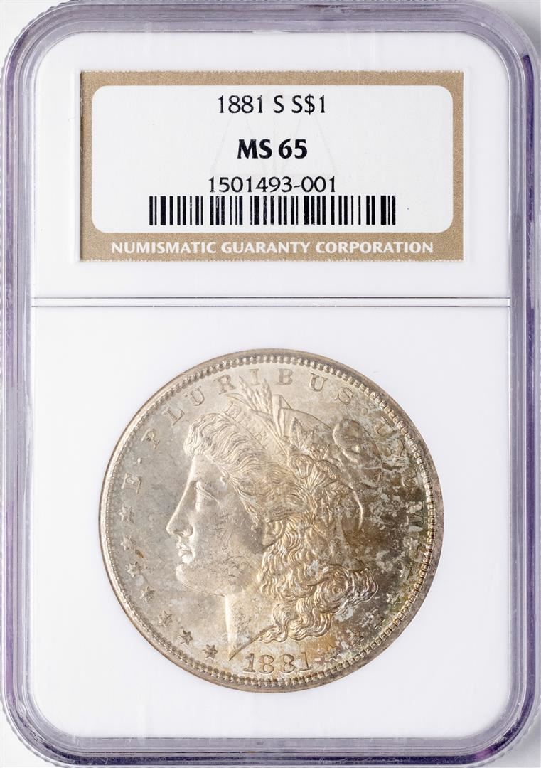 One 1881-S $1 Morgan Silver Dollar Coin NGC MS65. NGC Certified.