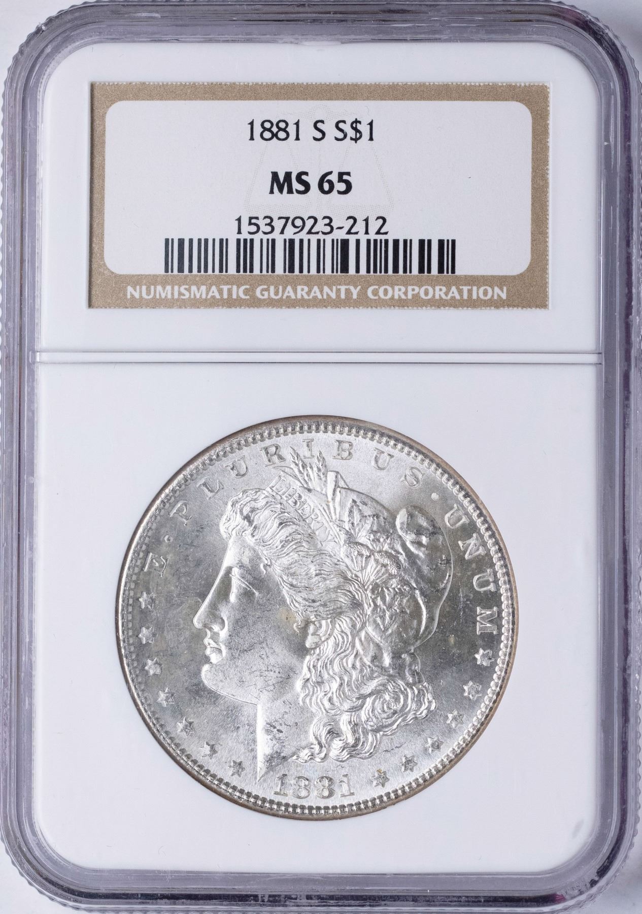 One 1881-S $1 Morgan Silver Dollar Coin NGC MS65.