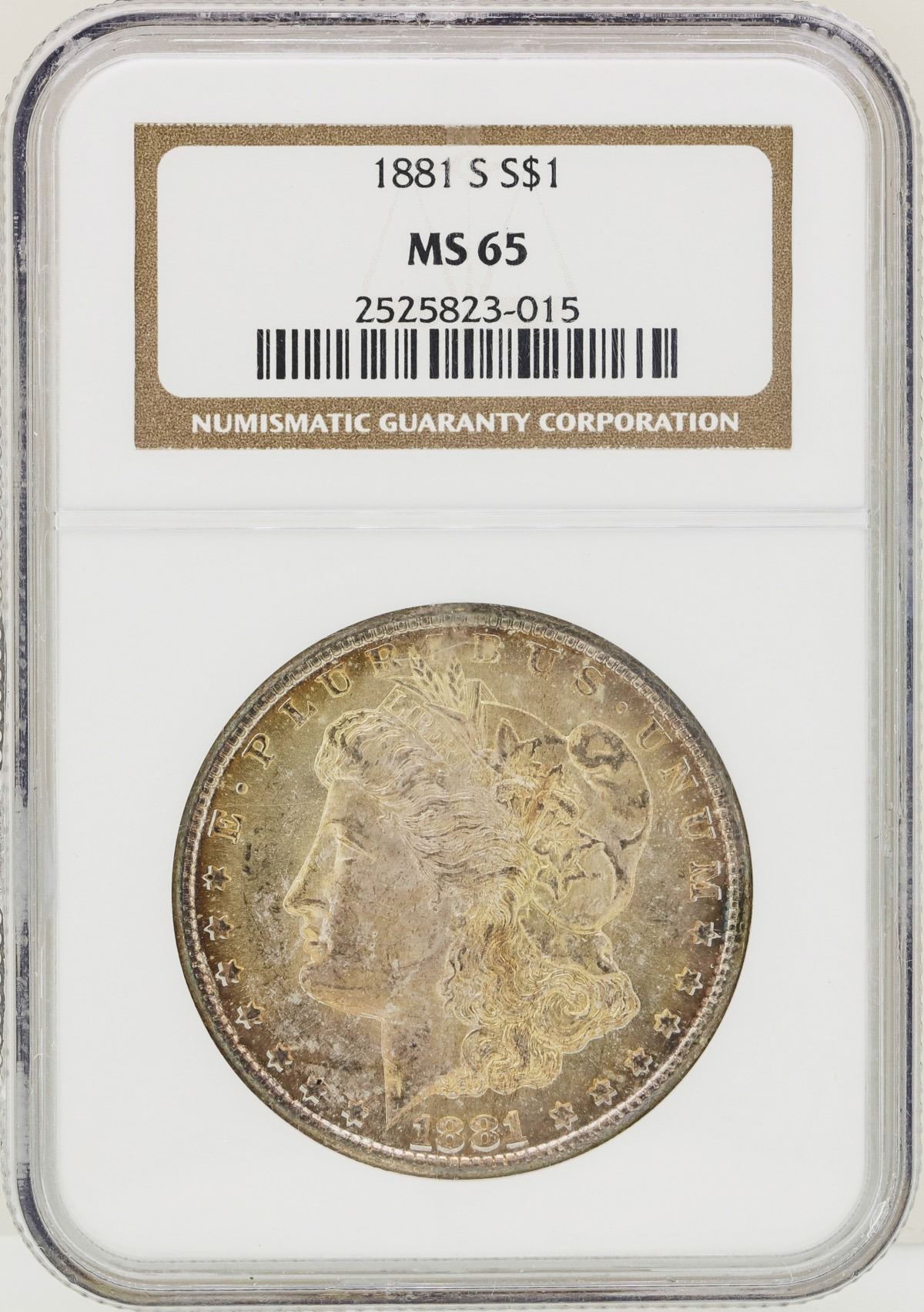 One 1881-S $1 Morgan Silver Dollar Coin NGC MS65.