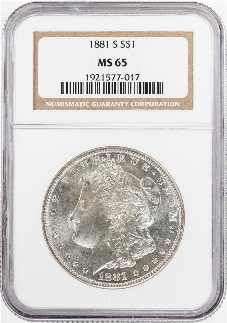 One 1881-S $1 Morgan Silver Dollar Coin NGC MS65. NGC Certified.