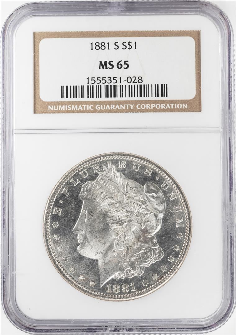 One 1881-S $1 Morgan Silver Dollar Coin NGC MS65. NGC Certified.