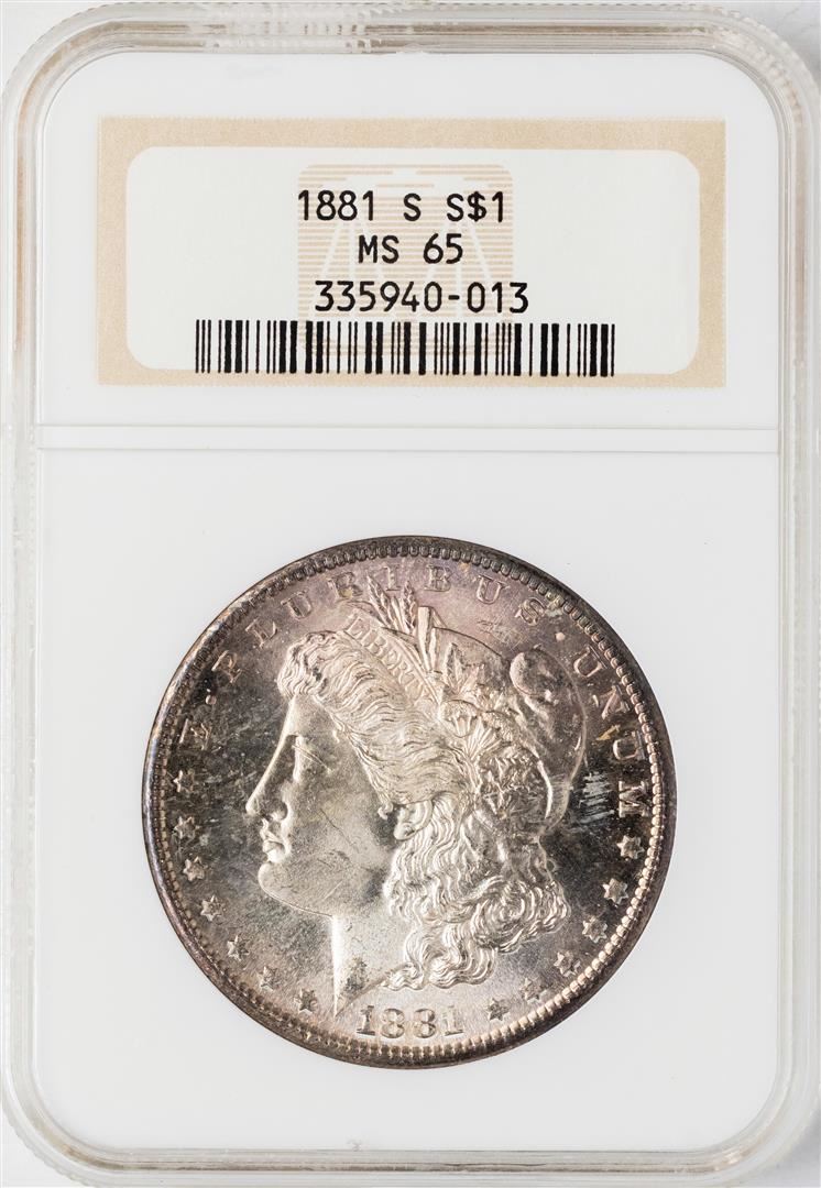 One 1881-S $1 Morgan Silver Dollar Coin NGC MS65. NGC Certified.