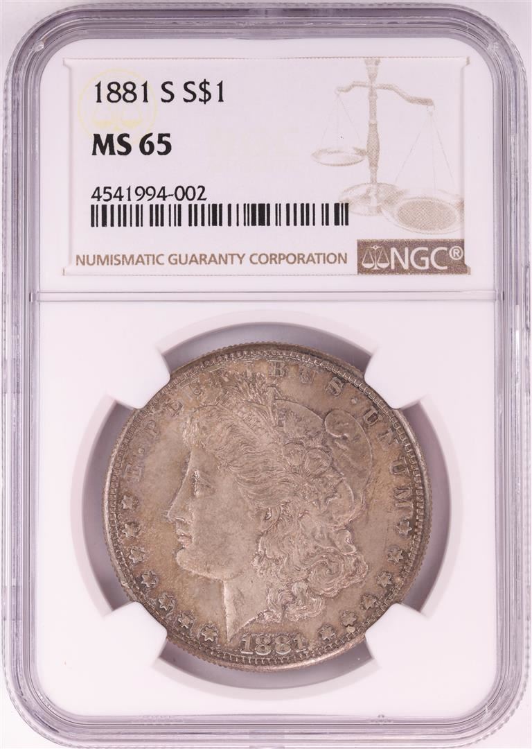 One 1881-S $1 Morgan Silver Dollar Coin NGC MS65. NGC Certified.