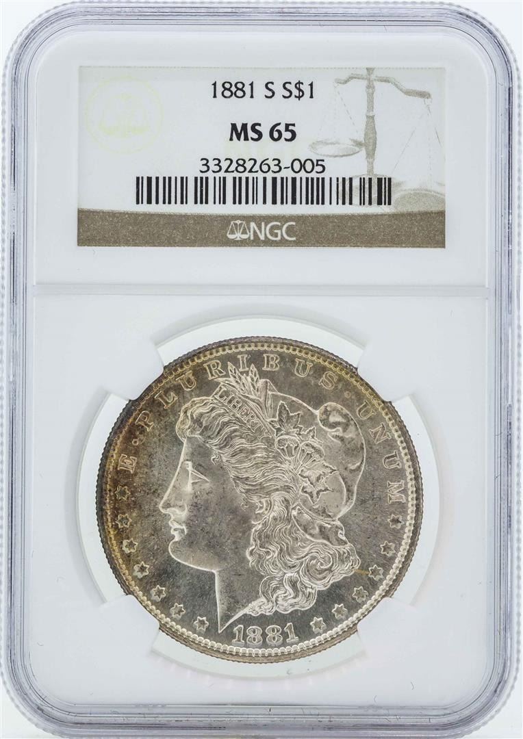 One 1881-S $1 Morgan Silver Dollar Coin NGC MS65. NGC Certified.