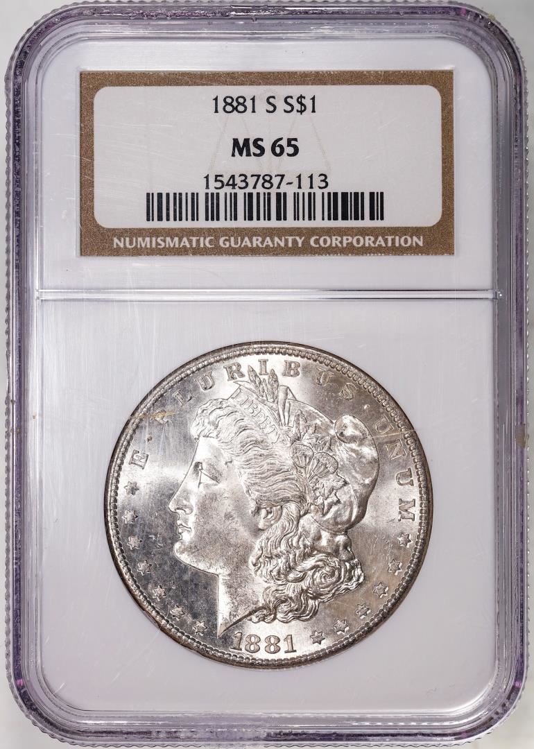 One 1881-S $1 Morgan Silver Dollar Coin NGC MS65. NGC Certified.