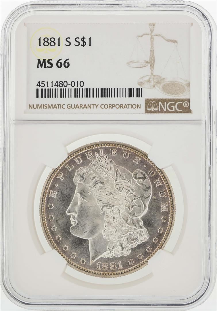 One 1881-S $1 Morgan Silver Dollar Coin NGC MS66. NGC Certified.