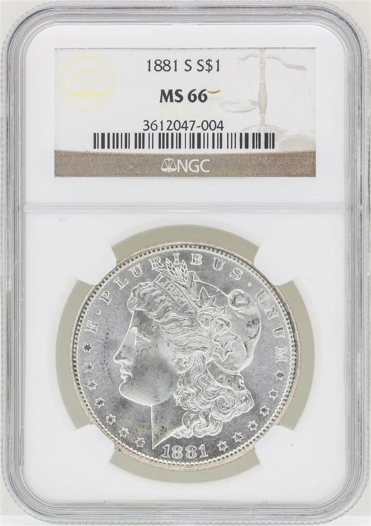 One 1881-S $1 Morgan Silver Dollar Coin NGC MS66. NGC Certified.