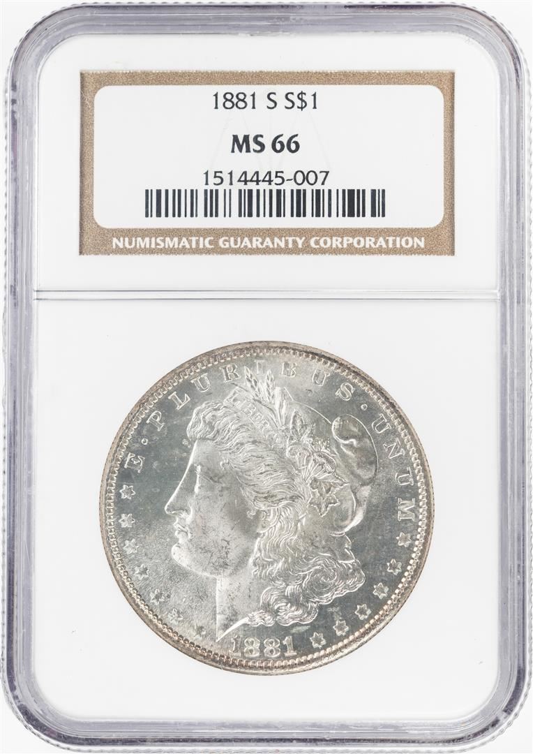 One 1881-S $1 Morgan Silver Dollar Coin NGC MS66. NGC Certified.